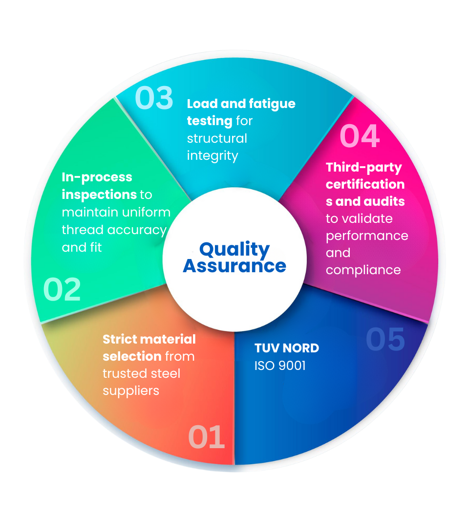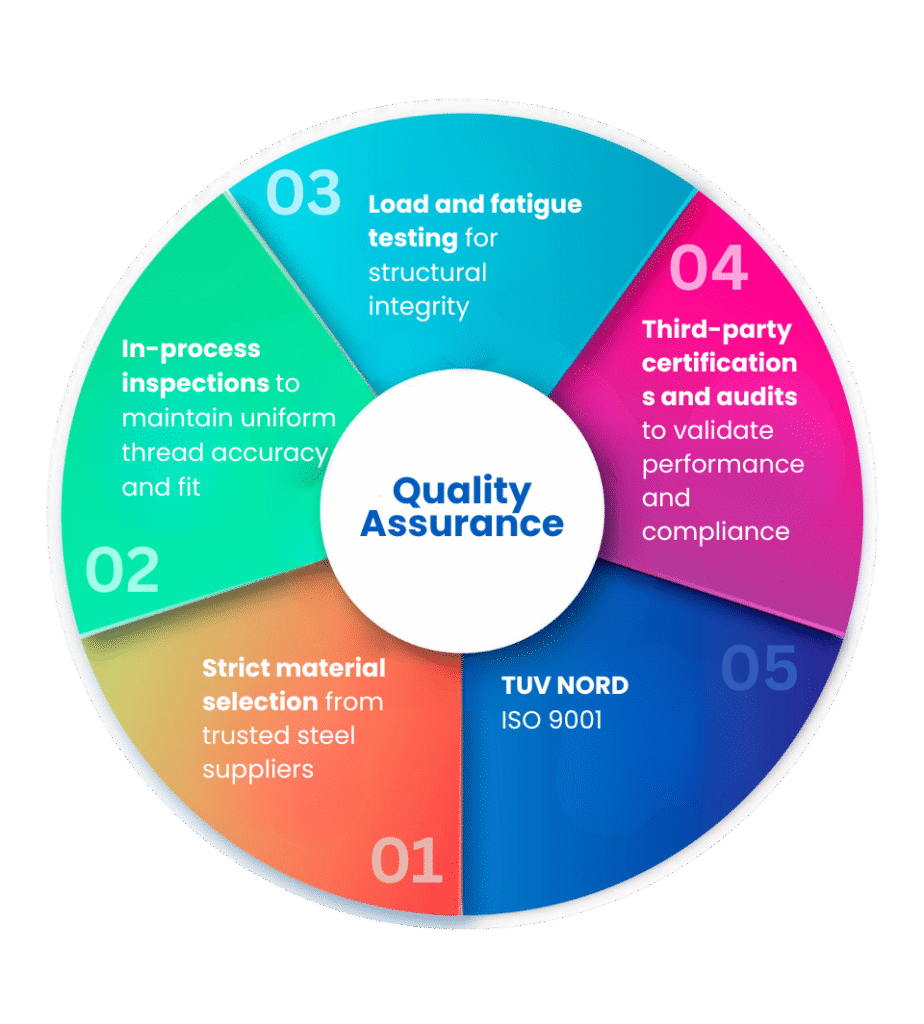 We perform a series of mechanical, dimensional, and tensile strength tests to verify product performance under real-world stress conditions. Each batch is traceable, documented, and certified for reliability, ensuring that you receive only the best.